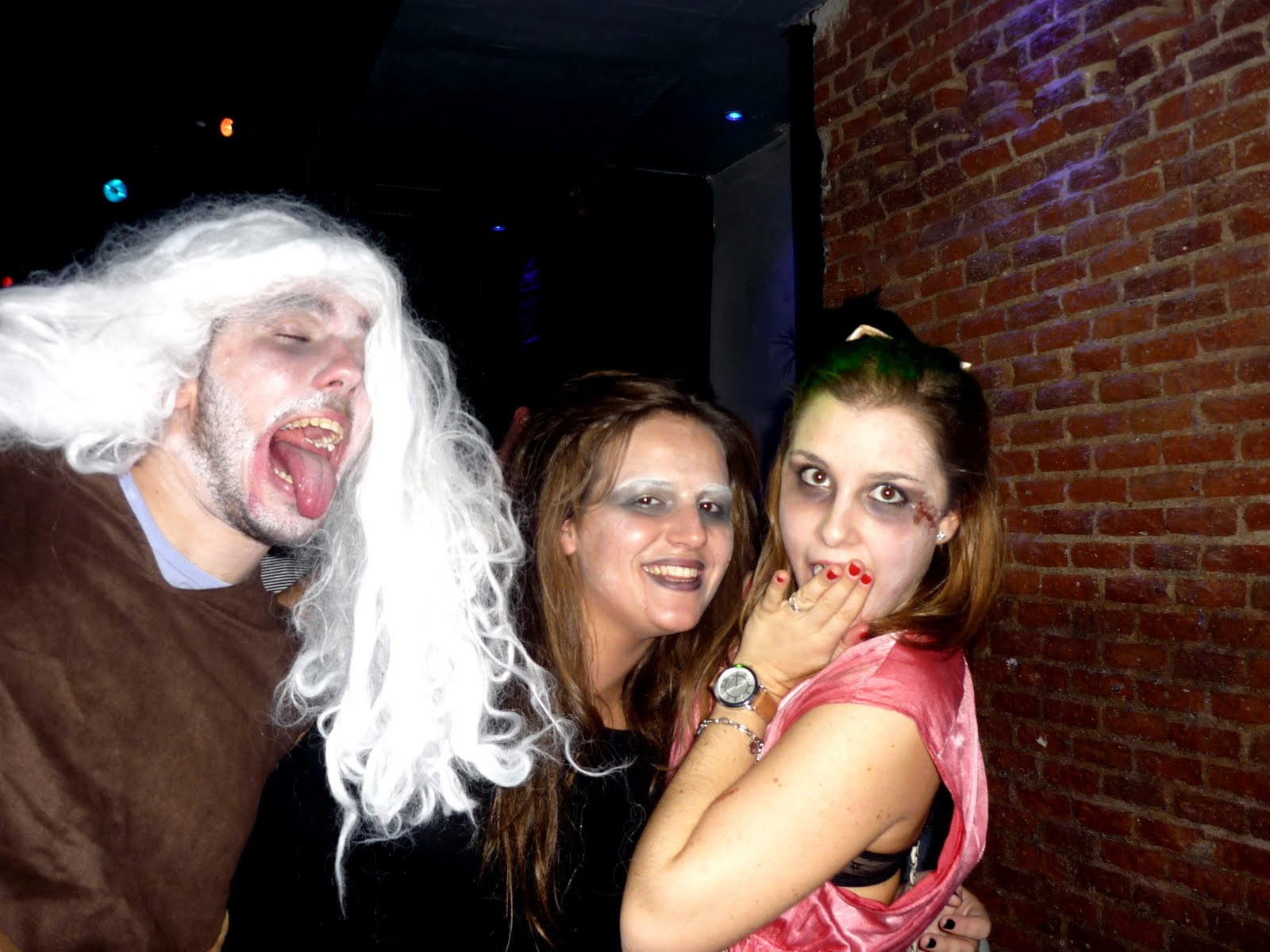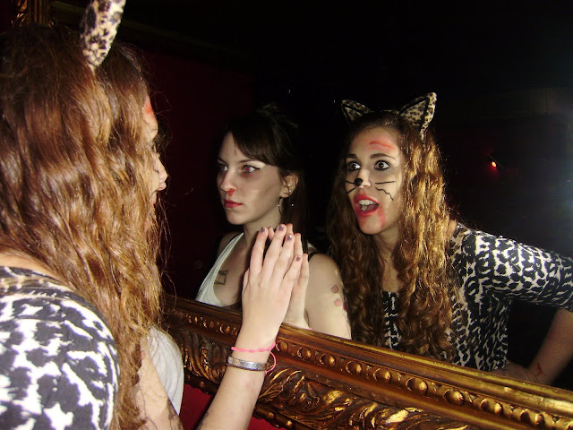 Este año no he tenido una, sino dos! fiestas de halloween. El sábado 30 nos adelantamos y nos vestimos de cosas...un poco sin sentido...para ir practicando. Elena de perro atropellado (aunque parecía un gato:) ....diga lo que diga), Lucia de Amy Whinehouse, Nickla de patinadora yankie y yo...de algo muerto...